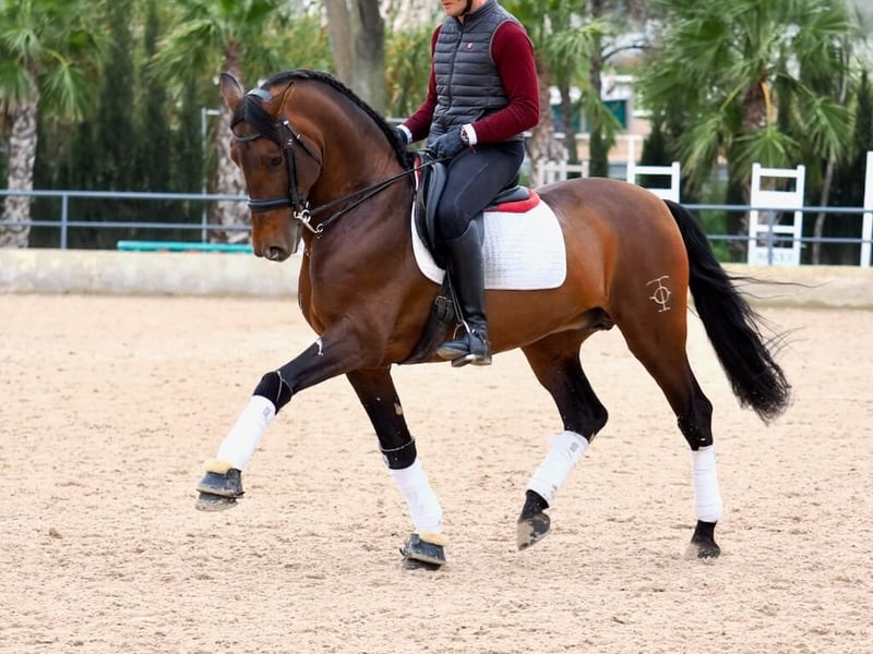 This impressive PRE horse, born in 2013 and standing at 1.67 m, stands out for its energy and spirited character, making it ideal for experienced riders seeking a dynamic and versatile companion. Ridden at a advanced level, he performs flying changes, an elegant piaffe, and showcases expansive and graceful trot extensions. This horse combines strength and vitality, offering an exciting experience for those who enjoy the challenge and beauty of working with an athletic and energetic horse. Perfect for those who value a connection with a lively horse, this Spanish horse promises to be a loyal partner both in the arena and in sports leisure activities.