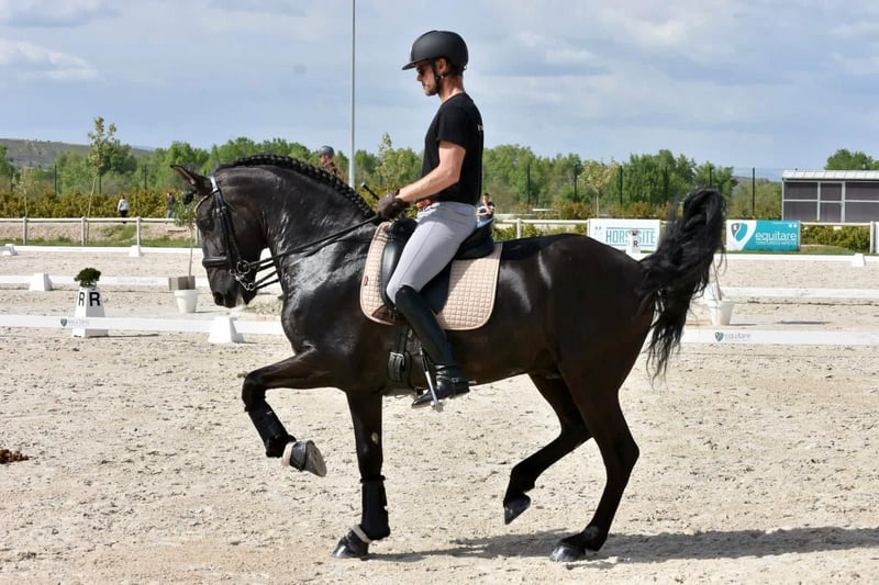 Namens een klant: Deze exclusieve, zeer imponerende PRE-hengst is te koop! De 11-jarige, prachtige zwarte hengst staat op het punt om Grand Prix niveau te bereiken en loopt momenteel Inter I. Hij heeft ervaring in de springsport en loopt nationaal op St. Georg en Inter I niveau. Dankzij zijn onberispelijke karakter en enorme rijdbaarheid is dit uitzonderlijke paard uitermate geschikt als leermeester. Meer informatie en video's alleen bij serieuze aanvraag. Locatie: Spanje - transport kan wereldwijd georganiseerd worden We hebben altijd zo'n 50 barokke & sportpaarden van hoge kwaliteit - bereden van raw tot Grand Prix - in onze portfolio. Als je geïnteresseerd bent, neem dan contact met ons op of bezoek onze website www.majestic-horses.com