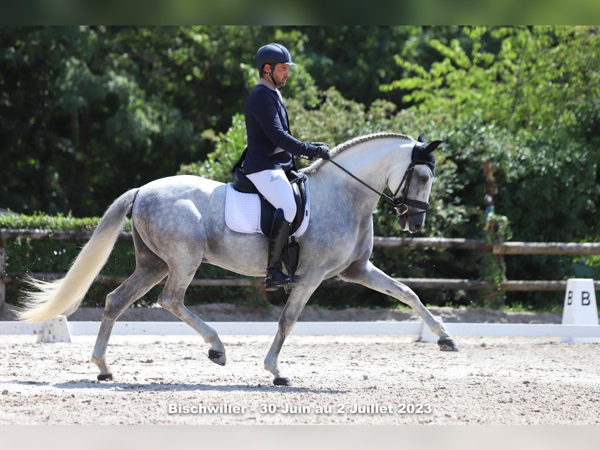 Brioso Fuentes ist eines jener Pferde, die sofort Respekt und Vertrauen wecken. Seine natürliche Eleganz, sein leuchtend graues Fell und sein kompakter, harmonischer Körperbau (1,61 m) verleihen ihm eine zeitlose Präsenz, die typisch für die schönsten Vertreter der PRE-Rasse ist. Mit 15 Jahren verkörpert dieser bestens ausgebildete Hengst Erfahrung, Weisheit und Zuverlässigkeit. Im Alltag zeichnet sich Brioso durch eine seltene Freundlichkeit aus: • engagiert, • liebevoll, • unempfindlich, • sehr ausgeglichen im Kopf, • wenig heiß, aber dennoch reaktionsschnell und angenehm im Sattel. Er ist ein Pferd, das die Nähe des Menschen liebt, emotional sehr stabil, zugänglich und großzügig – sowohl beim Training als auch im Gelände. Sein zuverlässiges Temperament macht ihn zu einem beruhigenden Partner, der leicht zu handhaben ist und für Reiter, die in Komfort und Gelassenheit Fortschritte machen möchten, äußerst angenehm ist. Seine Abstammung spiegelt ein hochwertiges PRE-Erbe wider: Vater: Oslo II (PRE) – bekannt für seine Eleganz, sein Gleichgewicht und seinen soliden Geist. Mutter: Financiera F, Tochter von Financiero II (PRE) – eine Linie, die für Flexibilität, Regelmäßigkeit und bequeme Bewegungen geschätzt wird. Ein harmonischer Kreuzung, der die Sanftheit, Flexibilität und Intelligenz von Brioso perfekt erklärt. Derzeit tritt Brioso im Niveau Saint Georges an und beherrscht die Bewegungen der Klasse Pro 2, mit gutem Verständnis für die Anforderungen und echter Flexibilität im Körper. Er zeigt: • drei korrekte, bequeme und leicht zu nutzende Gänge, • große Flexibilität, • ausgezeichnete Bereitschaft, • eine schöne natürliche Leichtigkeit. Immer engagiert gibt er sein Bestes, ohne sich je zu widersetzten. Wie ein guter Partner ist Brioso sorgfältig und einfach zu handhaben: • gewohnt an Pflege, • leicht zu manipulieren, • reist sehr gut, • unempfindlich auf der Bahn, • stabil und konstant, auch in ungewohnten Situationen. Er bereitet im Alltag ebenso viel Freude wie im Wettkampf. Warum Brioso Fuentes wählen? Ein großartiger Geist, liebevoll und zuverlässig Ein etabliertes Saint Georges-Niveau im Turnier Ein sehr respektvoller und leicht zu handhabender Hengst Ein flexibles, komfortables und angenehm zu reitendes Pferd Ein typischer, eleganter, moderner und vielseitiger PRE Für welchen Reiter geeignet? Brioso ist perfekt für: • einen Amateur, der Freude an einem zuverlässigen Pferd hat, • einen Reiter, der einen idealen Partner für die Dressurentwicklung sucht, • jemanden, der sanfte, intelligente und ausdrucksstarke Pferde schätzt.