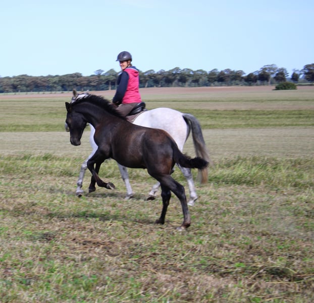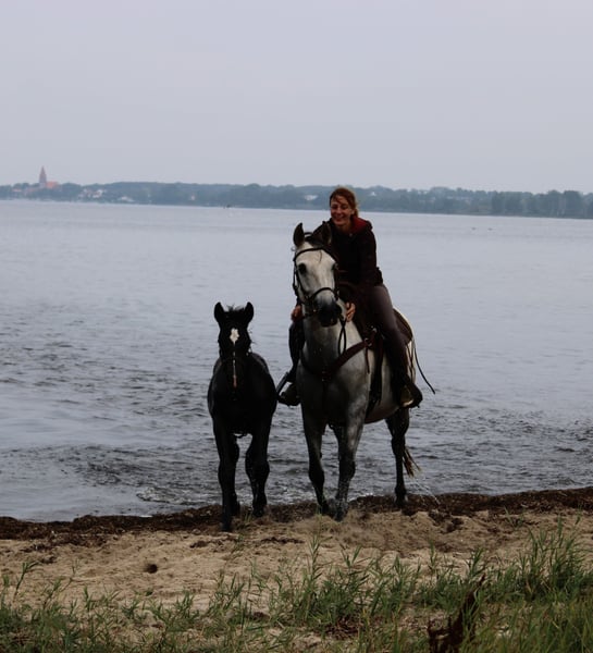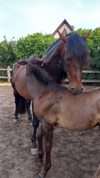 Unser Viento SP PRE (Picaza SMI PRE x Pacifico SMI PRE) ist am 15.05.2025 geboren. Ein wunderschönes, kräftiges, korrekt aufgemachtes Hengstfohlen, der wohl ein wahrlich prächtiger Schimmel werden möchte. Viento liebt ausgiebige Kuschel- und Putzeinheiten, gibt schon lieb seine Hufe und findet Ausflüge ins Gelände total spannend und großatig. Er ist sehr verspielt, dem Menschen extrem zugewandt, sehr neugierig, aber immer umsichtig. Sein Bewegungspotential hat er hervorragend von seinen Eltern mitbekommen. Mit viel Dynamik, Kraft und Schub tobt er über die Weide. Wer die tiefe Bindung zu schätzen weiß, die entsteht, wenn man von Fohlen- bzw. Jungpferbeinen an sein Pferd begleitet, für den könnte unser Viento SP genau der richtige Partner sein. Da beide Eltern gekört sind, erhält Viento volle Papiere der ANCCE. Auf dem letzten Bild und im Video sieht man auch Vientos Papa Pacifico SMI, der mit unseren Stuten zusammenlebt. Unsere Fohlen wachsen so in einer ganz friedvollen und liebevollen Familienherde auf und werden dadurch bestens sozialisiert.