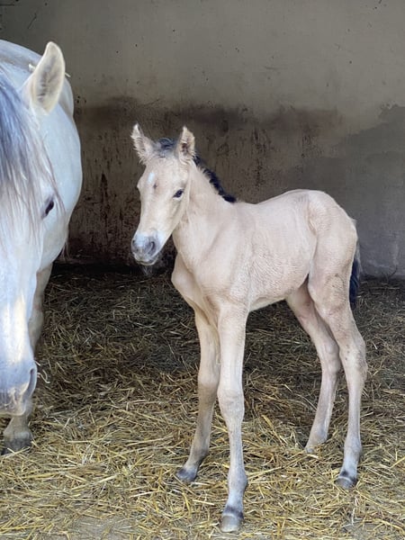 Lobito droomveulen uit onze fokkerij zoekt na het spenen zijn nieuwe favoriete mens. Lobito heeft niet alleen een prachtige kleur, maar is ook zeer elegant en kan zich erg goed bewegen. Helaas kunnen we niet allemaal houden en daarom wordt hij helaas te koop aangeboden. Met deze zonneschijn heb je altijd een glimlach op je gezicht en een vriend voor het leven. Hij groeit op in een diervriendelijke kudde en leeft in een open stal. De laatste twee foto's tonen zijn vader.