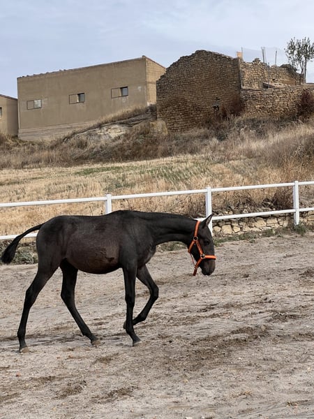 Potro PRE, inmejorables orígenes, hijo directo de Dormilon XLI un caballo cerrado de Miura, su madre es hija directa de Italo De la Vega, un caballo que fue campeón del mundo en Sicab Súper noble