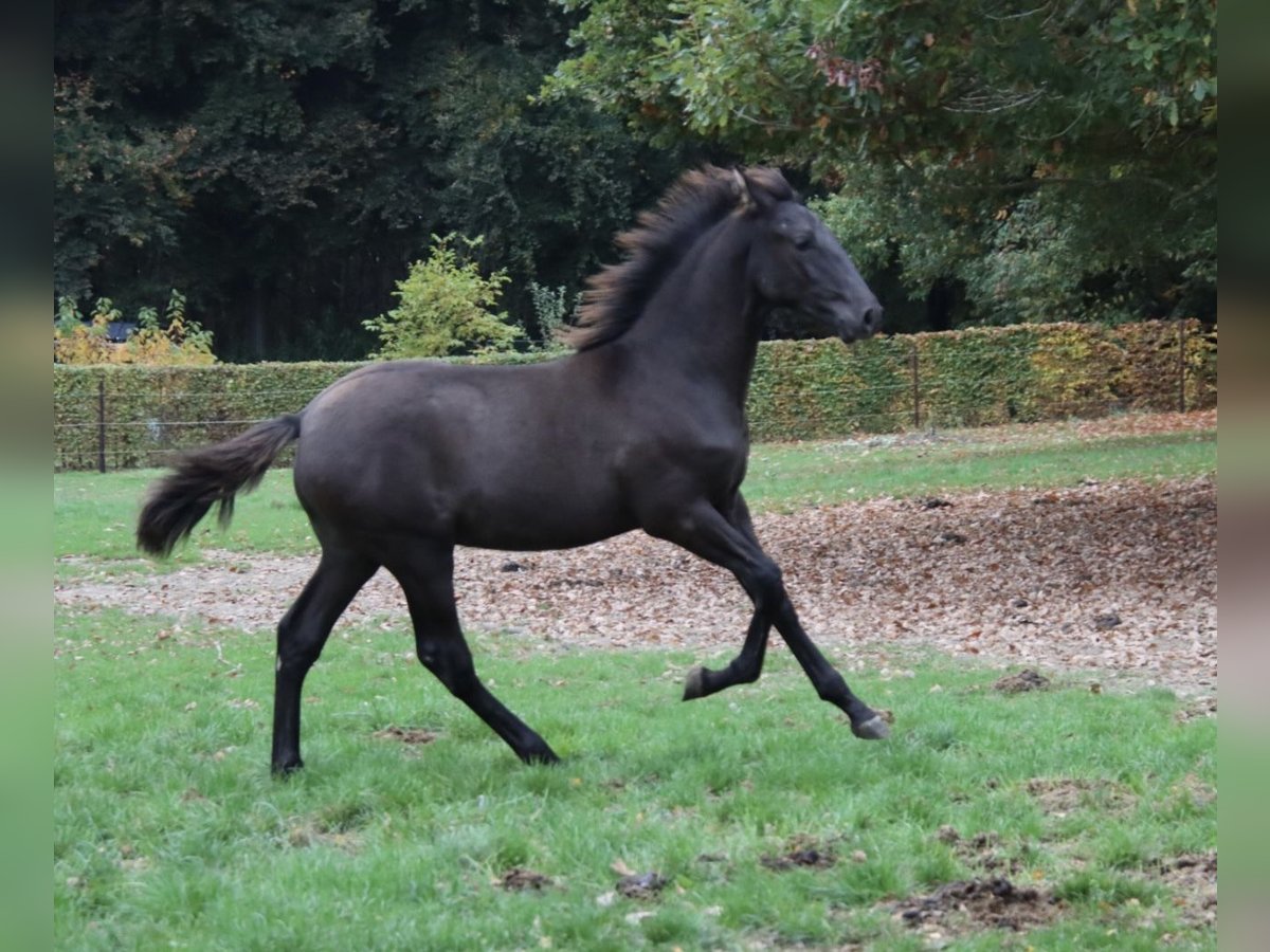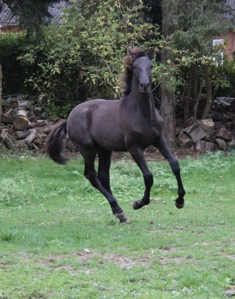 Born on May 1st, 2025, from a strong bloodline that guarantees quality. His sire, Avero PA, is a son of Cacique IX (Elite stallion) – who is also the sire of the famous Poeta de Susaeta and many other offspring excelling in sport. Manijero is an exceptionally tall and powerfully built colt with a calm and friendly character. He shows every promise of growing into an impressive, baroque black stallion 🖤, expected to mature well above average height. Registered in the ANCCE studbook. We can arrange transport and all necessary documents for you.