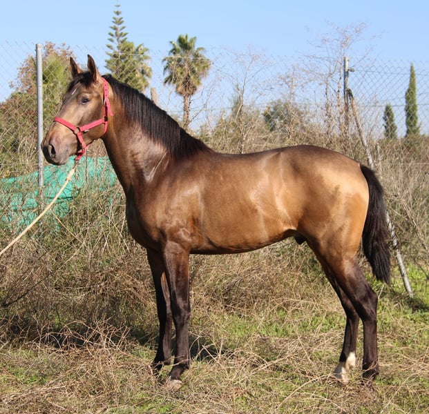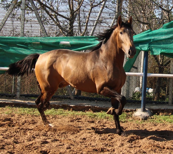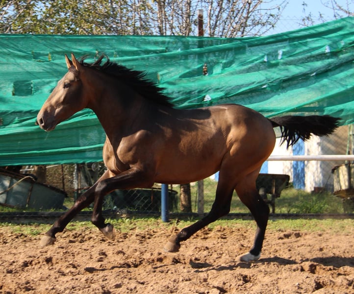Nativo, geboren 05.04.23, ist der typische PRE, barock, kurz, kraftvoll und dann noch in Sonderfarbe. Er kennt Longe und Sattel, mehr im Moment noch nicht. Nativo ist klar im Kopf, nicht hengstig, manchmal ein richtiger Clown und sehr verspielt. Er hat sich als Fohlen eine Verletzung zugezogen, die aber längst verheilt ist, die Narbe ist rein ästhetisch (siehe letztes Foto). Auf Wunsch kann Nativo zur weiteren Ausbildung bei uns im Beritt bleiben. Eine AKU kann in Auftrag gegeben werden. Der Transport wird international organisiert. Videos auf Anfrage