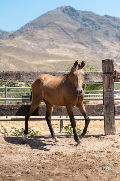 Young PRE Stallion born 03.2024. Buckskin coat and 165 in withers currently. Excellent in head with very sweet, calm character. He is used to children and dogs.
