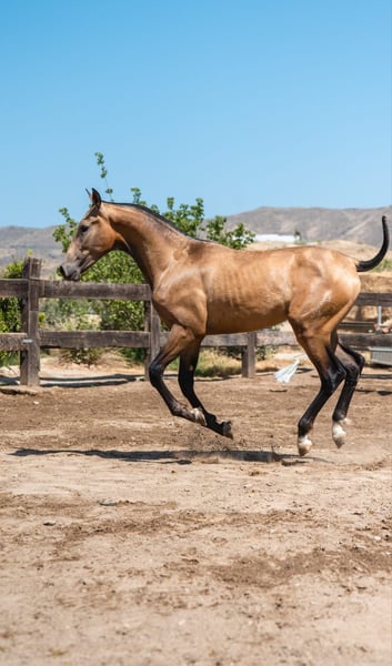 Joven semental PRE nacido en 03.2024. Pelaje buckskin y 165 cm a la cruz actualmente. Excelente en la cabeza con un carácter muy dulce y tranquilo. Está acostumbrado a niños y perros.
