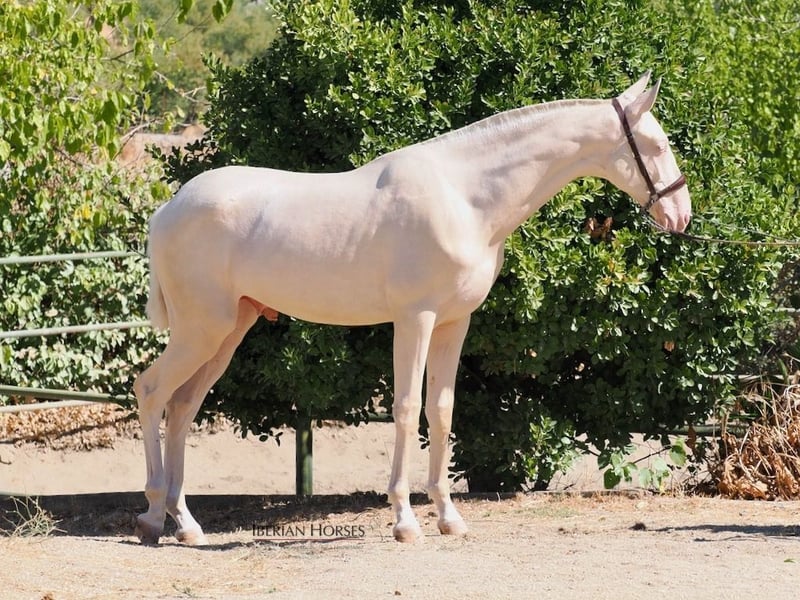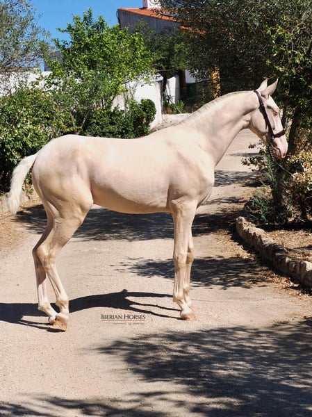 We present an extraordinary Pura Raza Española (PRE) colt, born in 2024, who at just a few months old already stands out for his impressive presence and a current height of 158 cm, which suggests a harmonious development and projection towards an ideal size for the discipline of dressage. This young colt embodies everything lovers of the PRE look for: a strongly defined morphology, with a well-set neck, powerful croup, and solid limbs that promise strength and endurance. His noble and alert expression, combined with a balanced temperament, make him a highly interesting horse both for breeding and for future sporting projects. What truly makes him unique, however, is his rare cremello coat, a feature seldom found within the breed, which sets him apart from the majority and makes him an exclusive jewel in the PRE world. This singularity elevates him as the perfect choice for breeders or riders seeking a horse not only functional and high-quality, but also with great aesthetic and genetic value. The combination of racial beauty, a rare coat color, and promising physical development make this colt an example difficult to find in today’s market. A genuine opportunity for those who wish to invest in a future horse that embodies distinction, quality, and authenticity.