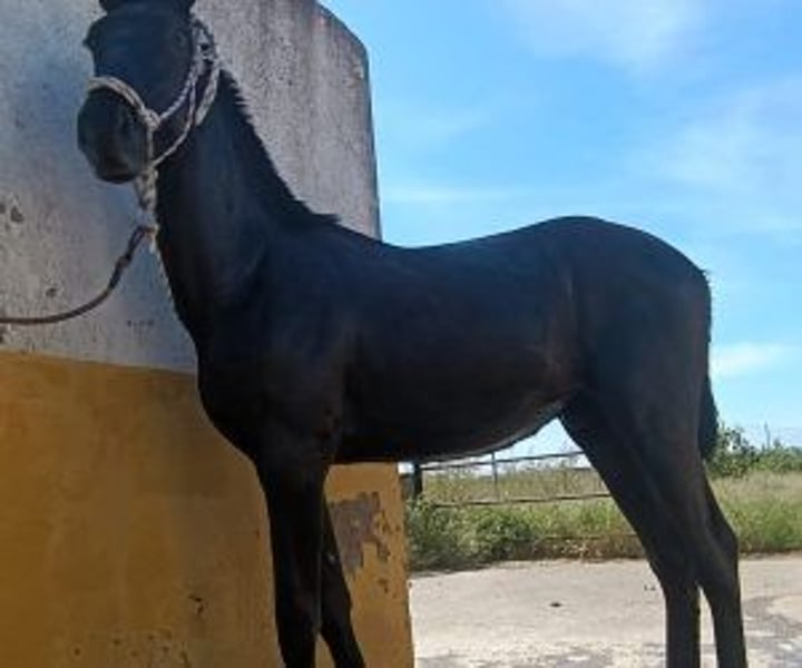 A very special foal Have you ever considered raising a truly special foal, with good bloodlines and great potential? So pay attention to this proposal. We present to you a BLACK colt of barely 1 year old, which already shows a remarkable head. He knows how to stay tied up, accepts showers and grooming, lets himself be touched all over, walks on a lead rope both in the countryside and in the village, and he even knows how to work on a lead rope. For his age, that's a lot… and very telling. He's one of those easy, attentive and respectful foals that you enjoy watching grow up. Its origins speak for themselves: – His brother is qualified to participate in SICAB this year, proof that this line has a real future in dressage. – His mother is 1,64 m tall and his father is 1,67 m tall, which suggests a very respectable adult height. This is a safe bet : a colt with nobility, presence, genetics and attitude. By simply letting him grow, he will double its value without doing anything extra. For someone who wants to enjoy the pleasure of raising a young horse, this is exactly the type of profile that is worthwhile. In his profile, you'll find photos of his father, mother, and brother to give you a better sense of the whole family. Can you picture him in a few years? We can. IberHorse We select foals and horses with spirit, quality, and a bright future. If this young horse inspires you to raise something special, contact us to schedule a call or come and see him. We'll guide you every step of the way so you can make your decision with complete confidence.