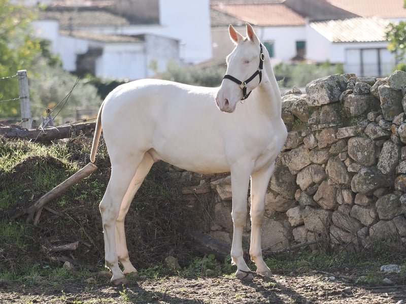 Nous vous présentons un exceptionnel poulain perlino, Pure Race Espagnole, né en 2024 et mesurant actuellement 157 cm. Cet jeune spécimen est le fils de Bronco XLV, un étalon de référence pour sa puissance, sa morphologie raciale et son caractère équilibré, et de Topolina GSA, jument de grande noblesse et de qualité dans ses mouvements, ce qui lui confère une lignée génétique solide, fonctionnelle et avec beaucoup de potentiel pour des disciplines telles que le dressage classique ou la reproduction sélective. Avec une expression vive, des mouvements libres et amples, et un caractère curieux et sociable depuis son jeune âge, ce poulain représente une opportunité unique pour ceux qui recherchent un PRE exclusif, d'une grande beauté, avec des lignes contrastées et une génétique spéciale. Excellente opportunité pour un futur éleveur cherchant à améliorer ses lignées, ce poulain est disponible pour les cavaliers ou éleveurs les plus exigeants.