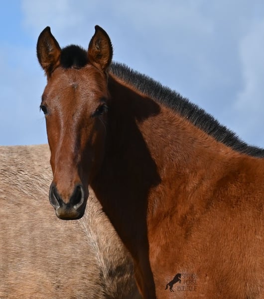 Dit PRE veulen (Andalusiër met ANCCE rascertificaat), geboren in de zomer van 2024, is nu al een echte blikvanger! Hij mag nog bij zijn moeder zijn, maar zal binnenkort gespeend worden en op zoek gaan naar zijn forever home. Hij leeft 24 uur per dag in een robuuste houderij en heeft, dankzij de harde grond van Menorca, echt een goede hoefkwaliteit en is goed aangebonden. Hoewel hij zo'n robuust leven leidt, is hij ongelooflijk knuffelig en zoekt hij meteen vriendelijk contact als je de paddock binnenkomt. Zijn afstamming doet de vrienden van het Spaanse paard meteen sneller kloppen! Van vaderskant is hij SENILLOSA gefokt, met ESCALERA in zijn voorouders. Aan moederszijde is hij een kleinzoon van DARTURO III, die afkomstig is van het ras RETAMALES, en zijn moeder heeft ook PLAZA DE ARMAS en CAMPO BAJO bloed in zich. Deze uitstekende fokkerij selectie is merkbaar in hem, want hij is niet alleen al mooi met een hoofd typisch voor het ras en barokke bouw, maar heeft ook geweldige beweging, die hij goed presenteert ondanks de stenige ondergrond. Een vrolijk, vriendelijk veulen voor een eerlijke prijs voor deze kwaliteit. Zijn vader meet 170 cm en ook hij zal een grotere jongen worden. Hij staat momenteel in Menorca! Video's en stamboom beschikbaar op aanvraag. Ik organiseer graag een AKU ter plaatse, transport of zelfs uw reis, mocht u hem persoonlijk komen bekijken. Details vind je op mijn website of in een gesprek. Saludos uit Spanje