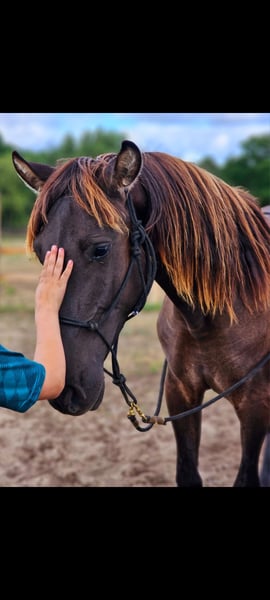 Torror ist in Deutschland geboren und ist sowas von wunderschön, wenn man ihn Live sieht , mit seiner einmaligen Farbe , jetzt schon langer Mähne und seinen tollen Charackter dazu , machen den jungen Hengst einzigartig. Er wird mal ca 158 groß werden . Er kennt den Schmied gibt alle 4 Hufe ohne Probleme. Läuft im Gelände ohne Probleme als Handpferd mit auch spazieren gehen mit anderen Pferden oder ohne andere Pferde ist für ihn alles kein Problem. Er ist die Ruhe selbst. Er ist super verschmust und liebt den Kontakt zum Menschen . Er hat die Farbe Smoke Black Er steht aktuell in einer Jungpferdegruppe und darf hier sein Leben genießen .