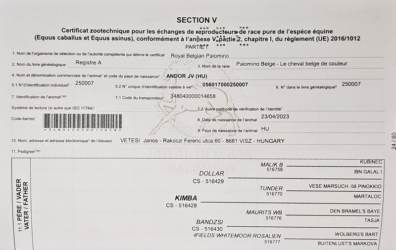 Andor JV is an exceptionally gentle and calm stallion with a very relaxed temperament. He is regularly vaccinated, dewormed, and trimmed. He is easy to handle and is familiar with the basics of foal training. During the day, he spends his time with his stallion companions in the pasture, where they doze in the sun or canter up and down the hills. In the evening, he relaxes on a soft straw bedding after a day full of activity. I am happy to assist with transportation! For further questions, please feel free to contact me via WhatsApp, and I can also send you a video upon request.