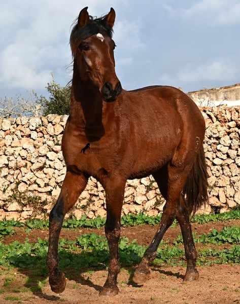 Dieser 2023 geborene PRE Hengst (Andalusier mit Rassenachweis der Ancce), ist ein richtiges Rohjuwel. Der Züchter legt großen Wert darauf, dass die Hengste bis mindestens 3 Jahre in der Hengstherde aufwachsen. So kommt es, dass er bei der Regensaison auf Menorca plüschiges Fell und etwas Panier im Fell hat, aber nur ein Indiz auf das natürliche Aufwachsen ;) Der Youngster ist sehr neugierig und aufgeschlossen und hat keinerlei Hengstmanieren, wobei er noch komplett roh ist. Freunde des klassischen PRE, werden beim Anblick auf seine Abstammung die Augen vor Freude leuchten! Denn er ist ein Sohn des Yeguada Militar (CARTUJANO) Hengstes UCLES II und väterlicherseits komplett Yeguada Militar gezogen! Mütterlicherseits kann sich auch sehen lassen, denn nicht nur hat er Escalerablut, sondern ist sogar ein Abkömmling des ELITEhengstes EDUCADO X von Guardiola! Daher kommt auch seine gute Bewegung und das barocke, nicht zu riesige Exterieur. Aktuell liegt er bei 154cm Stockmaß und wird auch noch einige Zentimeter wachsen, dennoch bestimmt im klassischen Typ des PRE bleiben und kein "Riese" werden. Er ist ein klassicher Brauner mit schwarzen Socken und schwarzer Mähne, aufgelockert durch einen kleinen Stern. Es besteht die Möglichkeit, dass er vor Ort noch antrainiert wird und aufs Reitpferdeleben vorbereitet wird. Für all jene die keinen Hengst halten können, besteht natürlich auch die Option der Kastration vor Ort. Sein Standort ist Menorca. Videos und Abstammung gerne auf Anfrage. Gerne organisiere ich vor Ort eine AKU, Beritt, Kastration, Transport oder auch ihre Reise, sollten Sie persönlich zum Anschauen kommen. Details dazu gerne auf meiner Seite oder im Gespräch. Saludos aus Spanien