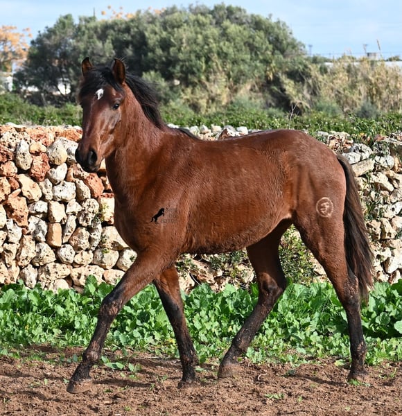 Este caballo PRE nacido en 2023 (Andaluz con certificado de raza de la Ancce) es una verdadera joya en bruto. El criador pone mucho énfasis en que los sementales crezcan al menos hasta los 3 años en la manada de sementales. Por eso, durante la temporada de lluvias en Menorca, tiene un pelaje espeso y algo de panza en el pelo, pero esto solo indica su crecimiento natural. El joven es muy curioso y abierto, y no presenta ningún comportamiento de semental, aunque todavía está completamente en desarrollo. ¡Los aficionados al PRE clásico se alegrarán al ver su linaje! Pues es hijo del semental UCLES II de Yeguada Militar (CARTUJANO) y, por parte de padre, completamente criado en Yeguada Militar. Por parte de madre, también tiene un linaje destacado, ya que no solo lleva sangre de Escalera, sino que además es descendiente del semental de élite EDUCADO X de Guardiola. De ahí provienen su buen movimiento y su aspecto barroco, no demasiado grande. Actualmente mide aproximadamente 1.54 m de alzada y todavía crecerá algunos centímetros, pero mantendrá el tipo clásico del PRE y no se convertirá en un "gigante". Es un clásico alazán con calcetas negras y crin negra, adornado con una pequeña estrella en la frente. Existe la posibilidad de que sea entrenado en el lugar y preparado para la vida de caballo de montar. Para quienes no puedan tener un semental, también se ofrece la opción de castración en el lugar. Su ubicación actual es Menorca. Videos y genealogía disponibles a petición. Con gusto puedo organizar una revisión veterinaria (AKU), entrenamiento, castración, transporte o incluso su viaje, si desea visitarlo en persona. Para más detalles, puede consultar mi página o contactarme directamente. Saludos desde España