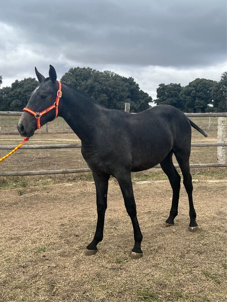 Teniente Teniente ist ein 1 Jahr und 5 Monate altes Hengstfohlen. Geboren am 2-5-2023. Er hat seine Pura Raza Española Karte und ist bei ANCCE registriert. Seine Abstammungslinie ist sehr bedeutend und er stammt von ehemaligen Champions ab. Er ist der Urenkel von Educado X (zuchtverbessernder Hengst und Goldmedaillengewinner der SICAB) und Enkel von Perica Ram (junger Champion der SICAB 2009). Sein Charakter ist ruhig und umgänglich, er ist ein perfekter Rechtshänder und lässt sich ohne Probleme oder Angst auf den Kopf stellen. Er lernt sehr schnell und wurde von klein auf im Stall zu einem sanften Hengstfohlen ausgebildet. Er ist derzeit 1'54 cm groß für sein junges Alter. Er hat einen sehr guten Schritt, Trab und Galopp, wie auf dem Video zu sehen ist. Er hat gute Dressurfähigkeiten und ausgezeichnete Bewegungen.