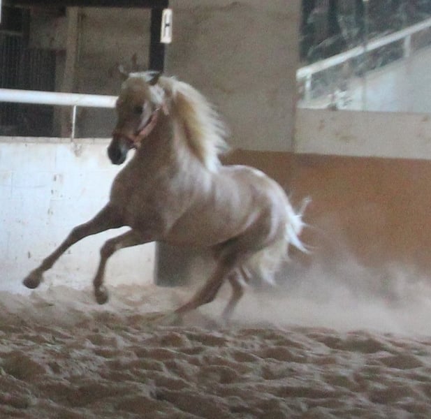Jaranero ist ein 2 1/2 jähriger PRE in ANCCE als Palomino eingetragen mit Gentest. Er ist ein sehr lieber Kerl, klar im Kopf und menschenbezogen. Kompakt, kräftig und elegant wie der typische Spanier aussehen sollte. Jaranero ist longiert und hatte auch schon mal einen Sattel drauf, was er gelassen und cool über sich ergehen lässt. Wer einen Freund fürs Leben zum selber ausbilden sucht, ist bei diesem hübschen Kerl genau richtig. Auf Wunsch kann er auch bei uns zum Beritt bleiben. Eine AKU kann in Auftrag gegeben werden. Der Transport wird international organisiert. Videos auf Anfrage