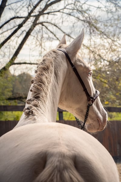 We present to you this young perlino stallion, a future breeding stallion with exceptional qualities. His rare and precious coat, carrying cream genes, guarantees the transmission of diluted colors (isabella, palomino, perlino, cremello, etc.) to his future offspring, a true treasure to enrich your breeding program. Highlights of Orgulloso: ⚜️ Unique genetics: Thanks to his perlino coat, this young horse is an ideal choice to bring color and originality to your foals. ⚜️ Exemplary character: Calm, curious, and easy to handle, he shows a reliable and balanced temperament, qualities he can pass on to his descendants. ⚜️ Prestigious origins: Coming from lines recognized for their beauty and performance, he has everything to become a sought-after and high-performing breeder. This young horse is a rare opportunity for breeders looking to add real value to their program: elegance, diversity of coats, and an exceptional mindset. Make a future-oriented choice for your breeding! For more information or to arrange a visit, please do not hesitate to contact us. --- ALEGRIA – Find the horse of your dreams and create a unique relationship based on trust and complicity. At Alegria, we know that buying a horse is much more than just a transaction. It’s about finding a life partner with whom you will build a solid and fulfilling relationship. We offer expert support at every step, so you can make an informed choice and start this adventure with peace of mind. Why choose Alegria? Personalized support to guide you in your choice. We help you find the horse that matches your personality, expectations, and skills, so that the relationship you build with him is smooth and natural. ✨ Our team of experts advises, guides, and supports you in your process so that you make an informed choice without rushing. Horses raised in an environment conducive to their well-being. Our horses are raised in exceptional conditions, where they benefit from gentle and respectful education, based on our exclusive method "Relationship of Complicity." Each horse is prepared to be a reliable, responsive, and balanced partner, ready to build a trusting relationship with you. Quality care to ensure optimal health. The well-being of our horses is paramount. They are regularly monitored by animal health experts: veterinarians, osteopaths, farriers, and dentists. This medical follow-up ensures that your horse will be in great shape, ready to start this new relationship with you in the best conditions. Transparent follow-up through progress sheets. Each horse benefits from a detailed progress sheet that allows you to know his exact level, strengths, and character. This transparency gives you all the keys to choose the horse that will meet your expectations and the relationship you wish to build with him. Continuous support for a successful relationship. At Alegria, we believe that a lasting relationship is not improvised. That’s why we stay by your side after the purchase, with personalized follow-up to help you build a true complicity with your horse. Through our in-person and online training, you will learn to better understand your horse and strengthen the foundations of your relationship. Testimonials from satisfied clients. We have supported hundreds of riders in their projects. 100% of our clients are satisfied with the support and the relationship they have been able to build with their horse. Their testimonials are the best proof of the quality of our work and the success of the relationships we foster. Find the horse that meets your expectations. Discover our selection of exceptional horses now and start imagining the relationship you will create with him. Consult the progress sheets and let our team of experts guide you to find the horse that meets your expectations. Discover our selection of horses at www.alegriacomplicite.com and start building the relationship of your dreams. Alegria – Find the horse that suits you and create a relationship based on trust and complicity.
