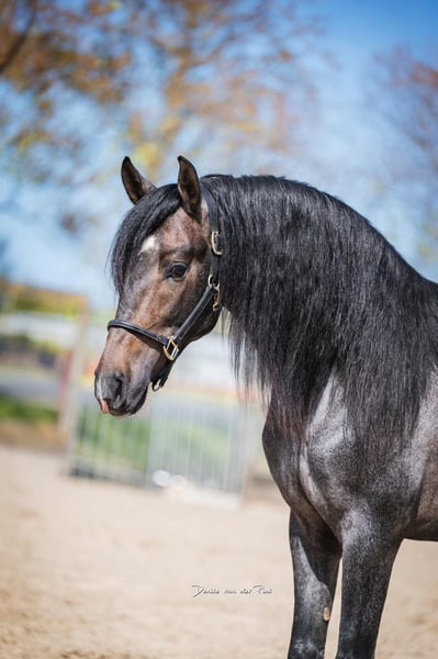 Missie: Jouw volgende eyecatcher #ROAN – zeldzaam. puur. onvergetelijk. – 3-jarige PRE-hengst in unieke roan kleur – zeldzaam, modern en absoluut een blikvanger. Met ongeveer 1,58 m brengt hij precies wat momenteel in de mode is: compactheid, uitstraling en dat typische Iberische gevoel. PRE-hengst – elegant, trots en expressief speciale kleur jong, helder van geest en nieuwsgierig klaar voor zijn pad – zonder ballast En heel eerlijk: Als je tot hier hebt gelezen… weet je het al.