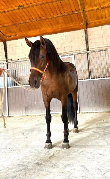 Lovely young PRE Stallion with very gentle manners and ridden so nicely in the smooth way that make a great ride to trust on him. He is working the basic gaits and doing hacking out in the field and roads, very safe to ride.