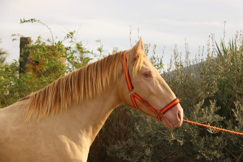 Dorado is a 2.5-year-old colt registered with ANCCE and DNA-tested. Originally registered as a Perlino, his color is now listed as Baya Perla. He has a gentle temperament, a clear mind, and is very human-oriented. Naturally, as a young stallion, he occasionally has his playful moments, but he is always easy to handle. Dorado comes directly from the breeder and has been raised in a stallion herd until nearly two years of age. He is familiar with lunging and has even had a saddle briefly placed on him. If you're looking for a special horse to train yourself, this handsome boy is an excellent choice. Upon request, Dorado can remain in our training program. An ultrasound examination can be arranged. International transport is organized. Videos available upon request.
