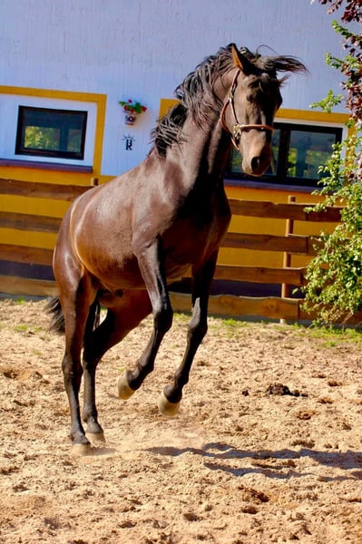 **Sales Advertisement: Dream Andalusian Stallion for Sale** We are offering a beautiful PRE stallion for sale. He will turn three years old in October 2025 and is still enjoying his youth. He is loadable and farrier-friendly. Barefoot. **Features:** - **Breed:** Pura Raza Española - **Gender:** Stallion - **Year of Birth:** 2022 - **Color:** Dark Brown - **Height:** 163 cm - **Use:** Dressage, leisure, later breeding. (He comes with a genetic analysis for color inheritance.) This elegant stallion impresses not only with his appealing appearance but also with his friendly character. The stallion is healthy. He lives in a species-appropriate stable and has regular contact with other horses, having grown up in absolute freedom in Spain. If you are interested or need further information, we look forward to your message. Viewings are possible by appointment. **Your new dream horse is waiting for you!**