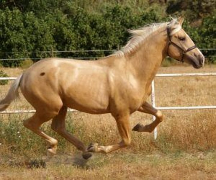 Junger, gut gebauter und vielversprechender Palomino Dieser zweijährige Palomino fällt sofort ins Auge: Er ist harmonisch, gut proportioniert und lässt bereits erahnen, welch imposantes Pferd er in einigen Jahren sein wird. Er wächst in Freilauf auf, was ihm eine gesunde und ausgeglichene Entwicklung ermöglicht. Sein Züchter pflegt täglich den Kontakt zu ihm, was sich in seinem Verhalten widerspiegelt: Er vertraut, respektiert, lässt sich anfassen und zeigt großes Interesse an Menschen. Dies ist eine großartige Gelegenheit für alle, die von einem zukünftigen Arbeitspferd träumen – ein prächtiger Palomino, ohne ein Vermögen auszugeben. Seine Schönheit und sein gutes Wesen sind bereits vorhanden... nun gilt es nur noch, ihn nach eigenem Bild zu formen. IberHorse: Wir wählen junge Pferde sorgfältig aus, wobei wir Wert auf Noblesse, Qualität und Potenzial legen. Wenn dieser junge Palomino Ihr Interesse geweckt hat, kontaktieren Sie uns gerne für ein Kennenlernen per Videokonferenz oder persönlich.