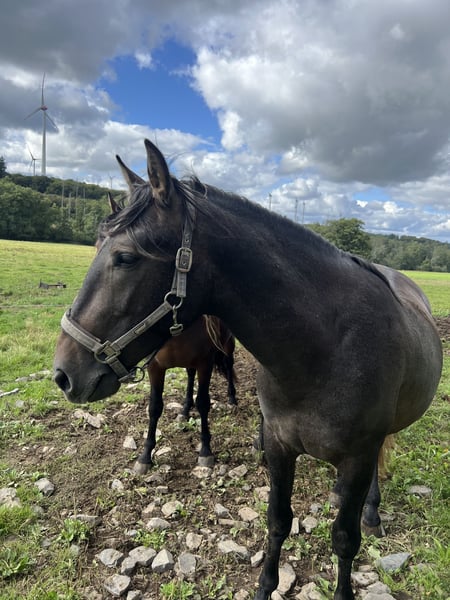 Verkaufe jungen, vielversprechenden PRE-Hengst, geboren im Jahr 2023. Dieser elegante Rappschimmel besticht durch seine ansprechende Erscheinung und sein vielversprechendes Fundament. Mit einem Stockmaß von 164 cm bietet er eine ideale Größe für vielseitigen Einsatz, sei es im Freizeitbereich oder später im Training für höhere Anforderungen. Der Hengst ist bereits gut im Gelände und im Umgang geritten, zeigt sich bequem und gelassen in allen Alltagssituationen. Seine freundliche und aufgeschlossene Art macht ihn zu einem angenehmen Begleiter, der sich durch seine Ruhe und Bereitschaft auszeichnet. Aufgrund seiner guten Abstammung und seines vielversprechenden Körperbaus bietet dieser junge PRE-Hengst großes Entwicklungspotenzial. Er ist bestens geeignet für Reiter, die einen zuverlässigen Freizeitpartner suchen, der auch in Zukunft noch weiter gefördert werden kann. Bei Interesse freue ich mich auf Ihre Kontaktaufnahme, um weitere Details zu besprechen und einen persönlichen Eindruck zu ermöglichen.