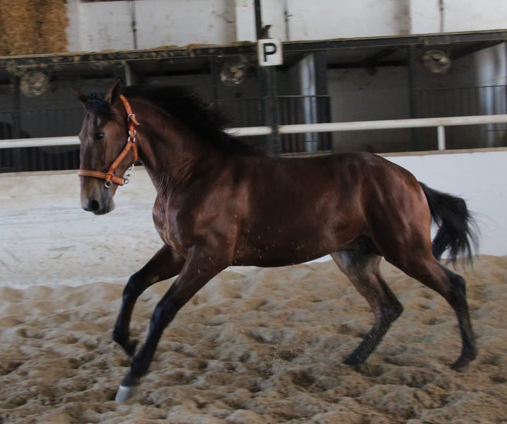 Napoles aspira a raggiungere grandi traguardi. È nato a giugno, ha già 2 anni e sta superando i 1,70 m di altezza al garrese. Ha un carattere d’oro: non è particolarmente dominante e si dimostra un vero coccolone. Oltre al lavoro con il cappuccio, l’addestramento alla museruola, la pulizia degli zoccoli e il lavoro alla longe con cui ha già portato anche un saddle, ha un carattere equilibrato e desidera compiacere il suo binomio. Chi cerca un compagno fedele e desidera seguirlo nella sua formazione troverà in Napoles il partner ideale. Poiché possiede documenti ANCCE completi, è anche adatto alla riproduzione. È disponibile un’ecografia su richiesta. Il trasporto sarà organizzato a livello internazionale. Video su richiesta.