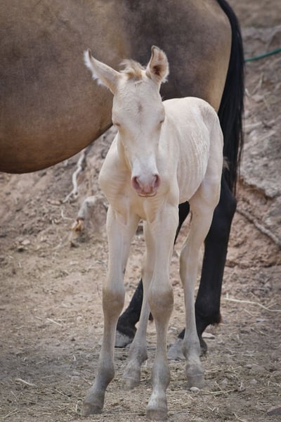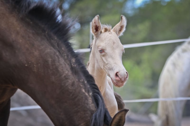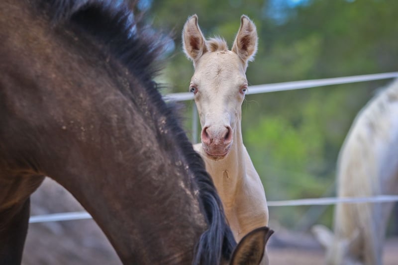 PRE veulen met ANCCE registratie in speciale vacht Perlino Bayo. Geboren 01.08.2023, hij is beschikbaar voor reserve. Zijn vader is Isabelo en zijn moeder is buckskin. Een zeer zelfverzekerd, lief en vriendelijk zelfgefokt veulen.
