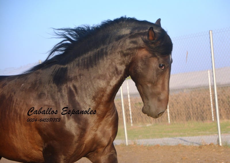 Deze stijlvolle PRE-hengst is harmonieus gebouwd en staat op een correct fundament. Hij heeft een barokke uitstraling en wordt zeker een hengst van de oude stempel. In zijn papieren zijn de klassieke typen van de PRE terug te vinden. De jonge hengst is zeer mensgericht. In de paddock toont hij graag zijn drie goede basisgangen. In omgang is hij braaf en vrolijk. Een jonge hengst voor zelfopvoeding. Het paard wordt in opdracht verkocht. Hij kan bij ons blijven voor training. Een keuring kan op korte termijn geregeld worden. Internationaal transport mogelijk.