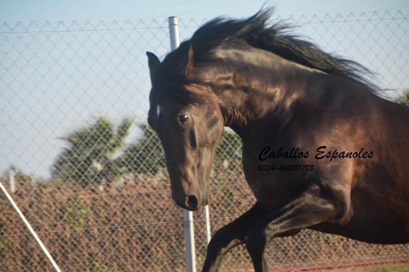 Este hermoso semental PRE tiene una estructura armoniosa y una base correcta. Es de tipo barroco y seguramente será un semental de carácter clásico. En su documentación se pueden apreciar los rasgos tradicionales del PRE. El joven es muy afable con las personas. En libertad, muestra con gusto sus tres buenos aires básicos. En manejo, es tranquilo y alegre. Un semental joven para su propia doma. El caballo se vende por encargo. Puede quedarse con nosotros para su entrenamiento. El examen de salud (AKU) puede organizarse a corto plazo. Transporte internacional disponible.