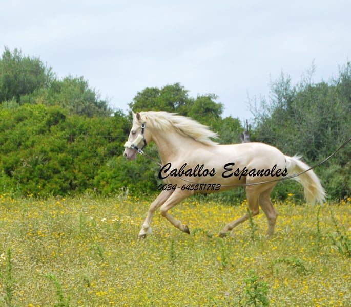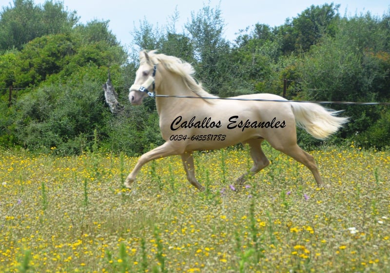 Un étalon PRE exceptionnellement beau, de couleur particulière – Palomino Perla. Le jeune cheval est bien construit, avec une tête expressive. L'étalon est doux en main et toujours curieux et intéressé. Lors de son débourrage, il a été très facile à gérer et il a déjà été en balade en extérieur. Un cheval fantastique pour quelqu’un qui recherche quelque chose d’exceptionnel. Origines : Paco Marí, Badal. Le cheval est vendu pour le compte du propriétaire. Il peut rester en pension chez nous si souhaité. Une échographie de contrôle sera organisée rapidement. Transport international possible.