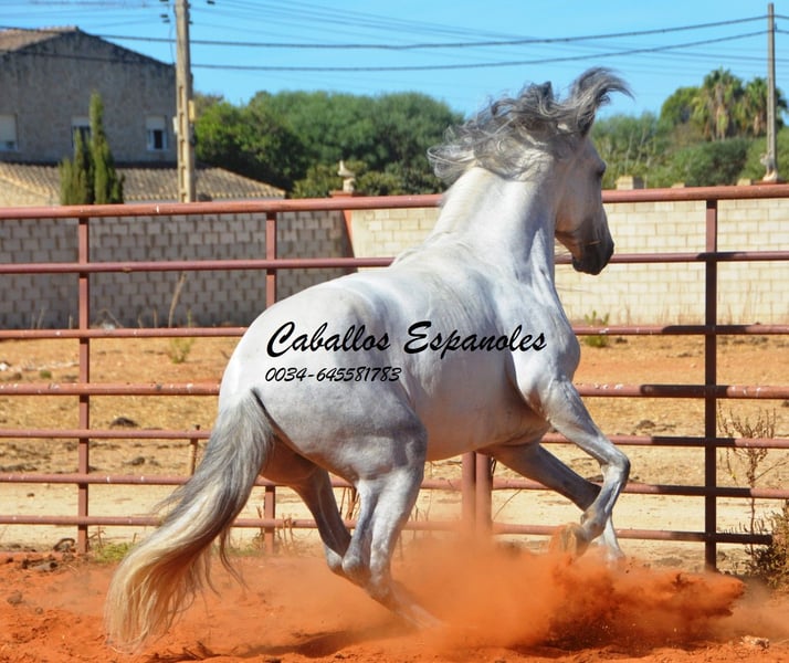 This expressive PRE stallion, with his classic head, stands on a correct foundation. The grey impresses with his three good basic gaits. In handling, he is always friendly and well-behaved. With a height of approximately 160 cm, he is perfectly suited for recreational riding and shows great potential for future tasks. The stallion has been ridden in the basic gaits and is easy to ride. He is ideal for riders seeking a reliable leisure partner who enjoys both trail riding and indoor riding. If you are interested or have further questions, please feel free to contact me. Arrange a viewing appointment and see this exceptional horse for yourself! The horse is being sold on behalf of the owner. He can remain in training with us. A veterinary health check can be organized at short notice. International transport available.