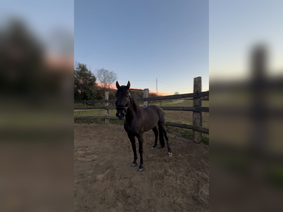 Precioso semental Pura Raza Española de capa negra con 160cm, con unos muy buenos aires y movimientos. Con un buen caracter para criar y montado. El caballo esta montado a los 3 aires en pista y tambien sale de ruta solo. No es un caballo para todos los publicos ya que tiene temperamento como semental pero quando esta para el trabajo es excelente y con un poco de trabajo es un caballo para todo el mundo gracias a la sangre española que hace que sea un caballo mas calmado. Tambien con un buen linaje para ofrecer como semental y dado de alta como semental en el libro ANCCE.
