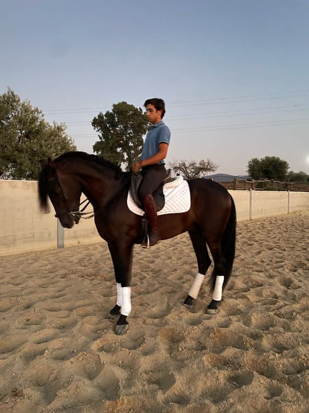 PRE 🇪🇸 ANCCE-Zertifikat Nachkomme von Esperado LV Vollblut 1,61 m Eleganter Hengst, mit hervorragenden Bewegungen, sehr stilvoll, schwarz mit üppigem Mähnen- und Schweifhaar. Ausbildung: - Unterstützungen - Pirouetten - Spanischer Schritt - Wechsel der Hufe