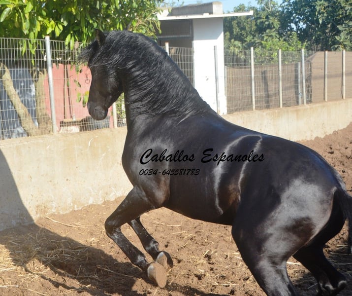 Étalon PRE de beauté exceptionnelle, de type baroque, construit harmonieusement avec d'excellentes allures de base. Il a été monté en douceur. Il est désormais monté en allures naturelles de manière réaliste. Le jeune cheval a également déjà été en extérieur et a montré une grande confiance. En manège, il est sage et facile à gérer. Lors du travail, il reste toujours proche du cavalier et aime collaborer. Origines : Son père est Yeguada Militar, Aquilino Moya, Escalera. Des radiographies récentes sont disponibles. Le cheval est vendu pour le compte du propriétaire. Il peut rester en pension chez nous si souhaité. Un examen vétérinaire complet sera organisé rapidement. Transport international possible.