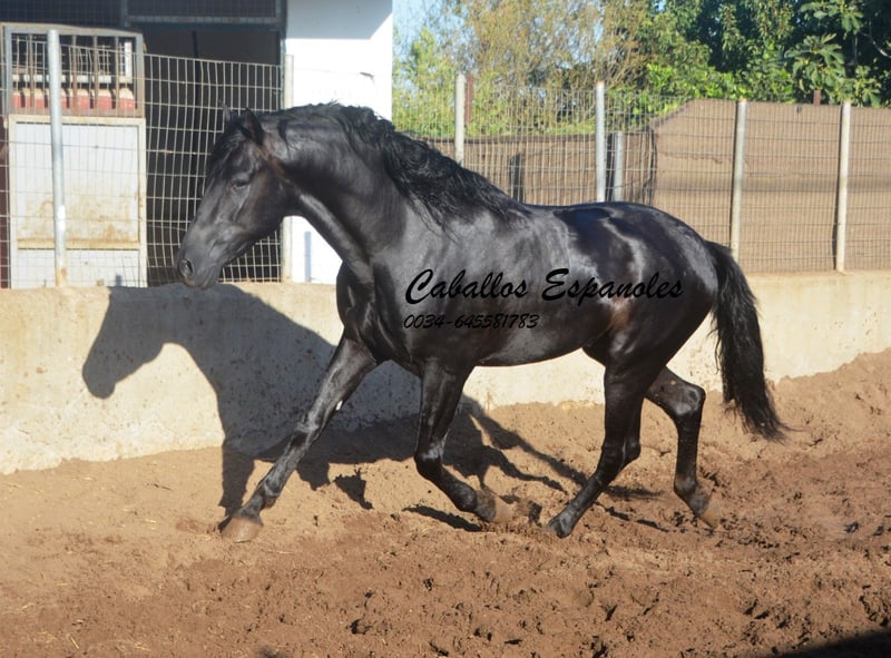 Prachtige, barokke PRE-ruin, harmonieus gebouwd met zeer goede basisgangen. Hij is voorzichtig aangezet en loopt inmiddels redelijk in de basisgangen. De jonge hengst is ook al in het terrein gereden en heeft zich daar niet onder laten indrukken. In de omgang is hij braaf en makkelijk. Tijdens het werken blijft hij altijd bij de ruiter en werkt hij graag mee. Afstamming: vader is Yeguada Militar, Aquilino Moya, Escalera. Huidige röntgenfoto's zijn beschikbaar. Het paard wordt in opdracht verkocht. Hij kan bij ons nog in training blijven. Een gezondheidskeuring (AKU) wordt op korte termijn geregeld. Internationale transportmogelijkheden.