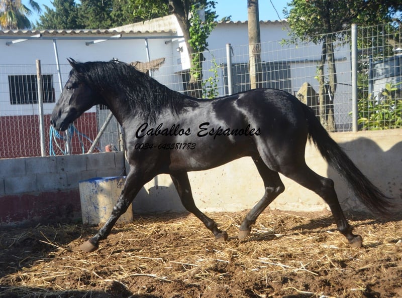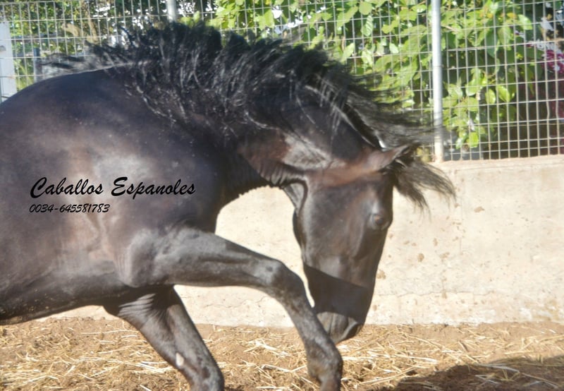 Przepiękny, barokowy ogier PRE, harmonijnie zbudowany, o bardzo dobrych podstawowych chody. Został już delikatnie wyprowadzony do jazdy. Obecnie jeździ na podstawowych chody w naturalnym tempie. Młody koń był już również na wycieczkach terenowych i zachował spokój. W kontaktach jest spokojny i łatwy w obsłudze. Podczas pracy zawsze jest przy jeźdźcu i chętnie współpracuje. Rodowód: ojciec to Yeguada Militar, Aquilino Moya, Escalera. Aktualne zdjęcia RTG dostępne. Koń jest sprzedawany na zlecenie. Chętnie pozostanie u nas jeszcze na treningu. Wkrótce zostanie zorganizowane badanie AKU. Transport międzynarodowy.