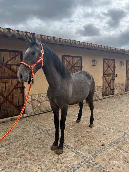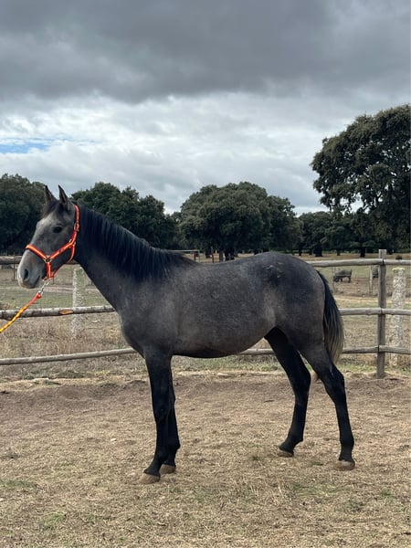 Tomy Tomy is a 2 years and 6 months old colt, born on 24-4-2022. He has his Pura Raza Española card and is registered with ANCCE. His genealogical line comes from former champions and is very distinguished, being great-grandson of Educado X (breed improving stallion and gold medal at SICAB) and grandson of Perica Ram (young champion at SICAB 2009). His character is noble and calm. He is used to walk right-handed with his head without any problems. He has been trained at the stable since he was a child, and is a quick learner. He currently has a height of 1'61 cm. He has a very good walk, trot and canter in both hands. He has a very good aptitude for dressage due to his exceptional movements.