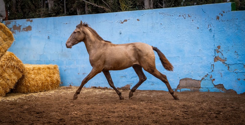 Young horse: Another chic champagne stallion with the color genetics: ggaaEEPRLPRL. So it always releases a Pearl gene 100%. He is very well socialized and, as you can see from the photos, very playful. He wears Peralta, Yeguada Militar, Bohorquez Blood and Torreluna. / More information on request!