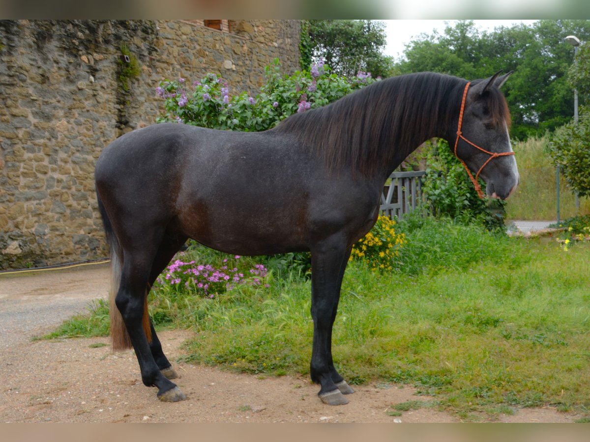 CORRIOL II, 3-jähriger PRE-Hengst, Schimmel, 162 cm hoch, frisch vom Feld, mit guten Bewegungen und Morphologie, beginnt mit der Ausbildung und wird gerade angeritten.