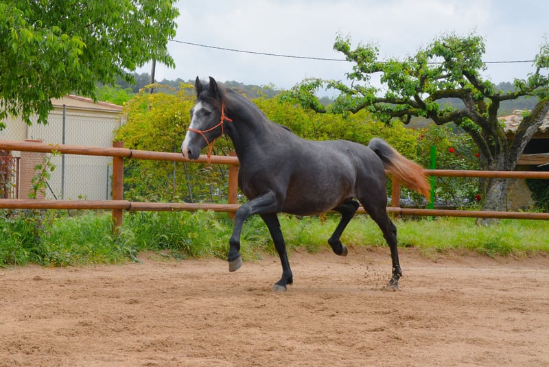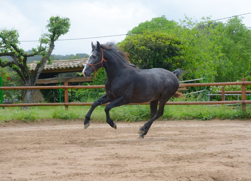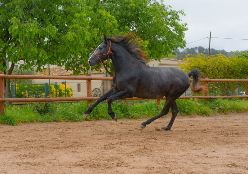 CORRIOL II potro PRE entero tordo de 3 años 162 altura recien entrado del campo con buenos movimientos y morfologia empezando su desbrave y empezandose s montar