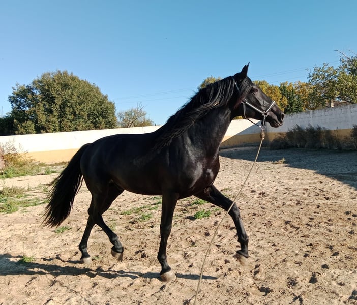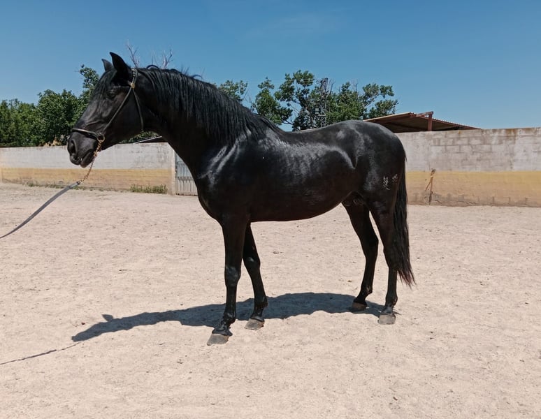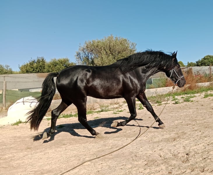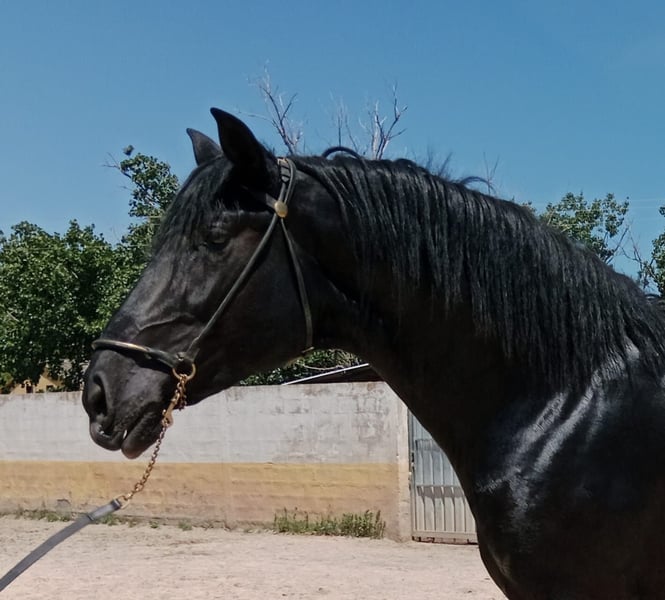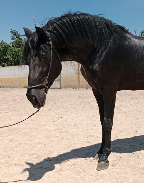 Stallion PRE noir de 3 ans, petit-fils de Nero II/Inedito, la mère mesure 168 au garrot. Déjà âgé de 3 ans, prêt à être approuvé pour la reproduction. Provenant d'une zone exempte de piroplasmose. Radiographies claires.