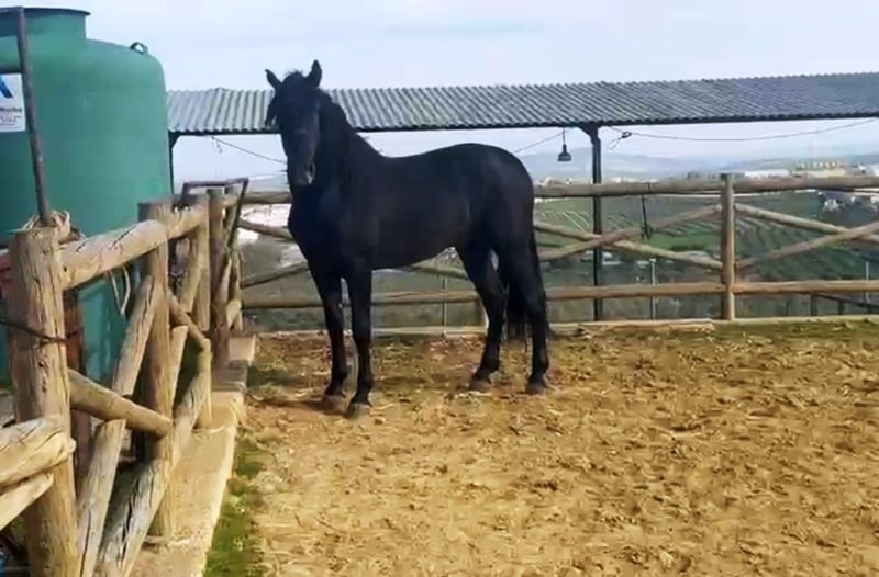 Dieser junge Rappe besticht durch seine elegante Erscheinung und sein freundliches Wesen. Mit einem Stockmaß von 162 cm ist er der ideale Begleiter für den Freizeitreiter, der einen zuverlässigen und charmanten Partner sucht. Seine hervorragende Abstammung und sein ausgeglichenes Temperament machen ihn zu einem perfekten Pferd für alle, die Wert auf Qualität und Charakter legen. Der Hengst zeigt sich lernfreudig und ist bereit, gemeinsam mit seinem neuen Besitzer die Welt zu entdecken. Der junge Mann wird gerade eingeritten, wird schon mit Sattel longiert. Dabei zeigt er sich immer ruhig und vertrauensvoll. Das Pferd wird im Auftrag verkauft Er kann gerne bei uns noch in Beritt bleiben. Eine AKU wird kurzfristig organisiert. Internationaler Transport.
