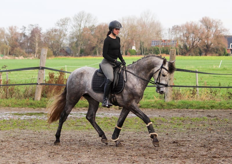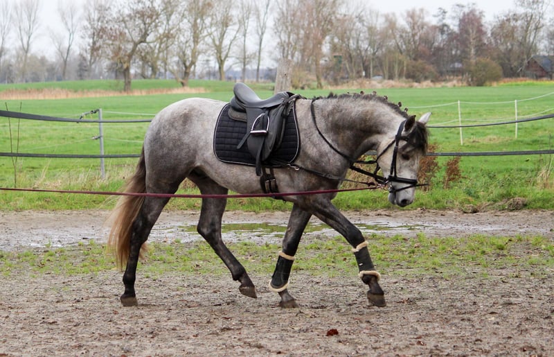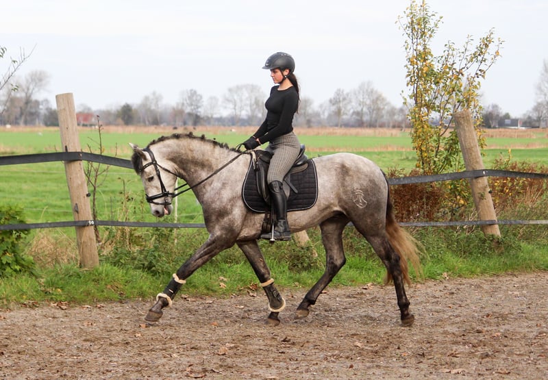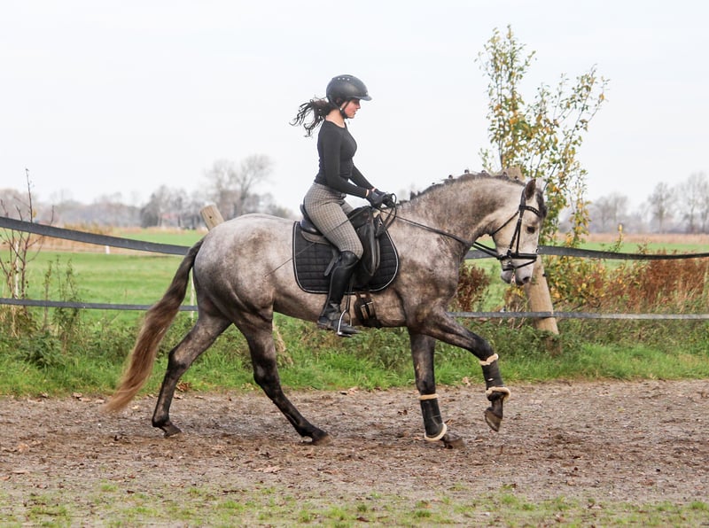 When movement quality and breed type come together, you get a Karthago :-) This young stallion has an exceptionally good walk, an outstanding canter, and plenty of talent to develop a superb trot. His hindquarters are always engaged, and he can effortlessly carry weight. Karthago is balanced, agile, and elastic. His sire, Activo VII, has achieved success in sport up to S class and has been placed there. Karthago is the last direct descendant of Activo. In type, Karthago also possesses all the qualities of a typical PRE: he is short-coupled, with a high neck set, a refined head, and a rounded croup. Karthago is easy to ride. He is not spooky or nervous. He is simply a young stallion and can sometimes be a bit playful. When led, he likes to interact. He can be a little impatient when grooming and tacking up, but never mean—just like a child. Karthago could be an excellent horse for a light rider who wants to develop and train him. It doesn't necessarily have to be in dressage; he would also be perfect for working equitation, as he brings speed and agility to the table. Karthago was born in Germany. We are one of the largest PRE breeding farms in Germany, and our horses are renowned worldwide for their movement quality. This year, one of our horses competed in the finals of the Iberian Masters in France, and another at SICAB in Spain. In our opinion, Karthago is also one of our top young prospects. If you're interested, please feel free to contact us by phone.
