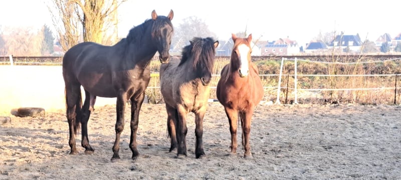 Nederlands Vriendelijke PRE-hengst (4 jaar, ca. 1.63 m, zwart) met paspoort ,carta en Ancce papier. Sociaal in de kudde (staat met twee ruinen), mensgericht en talentvol in loswerken. Inmiddels rij ik hem al twee weken regelmatig; hij loopt soepel en zuiver, zoals te zien is op de video’s. Eerlijk dossier beschikbaar: aangeboren sacralisatie L6–S1 en bekkenasymmetrie; in 2025 aandacht rechter sprong, sarcoïd verwijderd. Daarom is de belastbaarheid op lange termijn onbekend → verkoop als project voor een ervaren adres (niet voor fok). Keuring k.k. Video’s/rapporten op aanvraag. Prijs: €6.500 (vast), Enkhuizen (NH). Optioneel castratie vóór levering: koper betaalt de kliniek rechtstreeks. English Friendly PRE stallion (4 yrs, approx. 1.63 m, black) with passport and carta. Social in a small herd (with two geldings), people-oriented, talented at liberty work. I have been riding him regularly for two weeks now; he moves smooth and sound, as shown in the videos. Transparent vet file available: congenital L6–S1 sacralisation and pelvic asymmetry; 2025 note on the right hock, sarcoid removed. Therefore long-term ridden capacity is unknown → sold as a project for an experienced home (not for breeding). Pre-purchase exam welcome (buyer’s cost). Videos/reports on request. Price: €6,500 (fixed), Enkhuizen (NL). Optional castration prior to delivery: buyer pays the clinic directly.