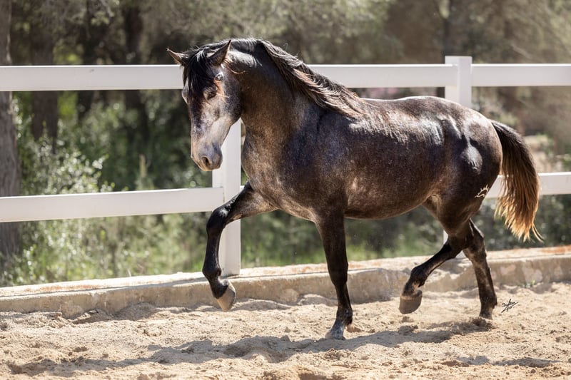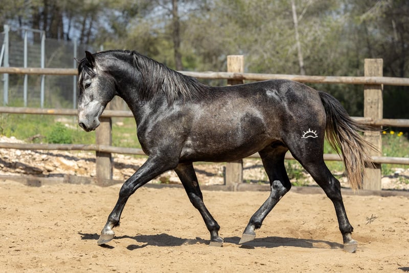 Este hermoso potro joven de estilo barroco busca un hogar. Ha crecido en libertad en manada y proviene de una cría cuidadosa y amorosa. Posee excelentes movimientos básicos y un carácter excepcional, muy confiado y cercano a las personas. Actualmente, ya se le está iniciando en la monta con delicadeza y se trabaja con él desde el suelo. Conoce el trabajo en el picadero, la entrega de cascos y también es tranquilo en el remolque. Se estima que alcanzará una altura de aproximadamente 1,64 m. Las radiografías están disponibles y no muestran ninguna anomalía. Para más información, no dude en contactarnos: +49 171 528 48 65.