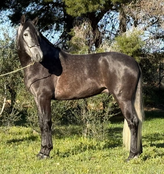 Batalay Momo is a gorgeous dressage prospect with a particularly friendly character. This lovable stallion is a real eye-catcher and impresses not only with his looks but also with his wonderful charisma. His size also makes him ideal for taller/heavier riders. Batalay has enjoyed a classical training and is currently performing at a good A level, mastering lateral movements and half-passes. He gives his rider a great riding experience and is simply fun to ride. In addition, he has three excellent basic gaits for classical dressage. Batalay is, of course, a true gentleman in his manner and shows no stallion behaviour even in a large, mixed stable with almost 180 horses. Of course, he can still be castrated before transport if desired. Batalay comes with full ANCCE papers and the best pedigree. Location: Spain – transport can be arranged worldwide.