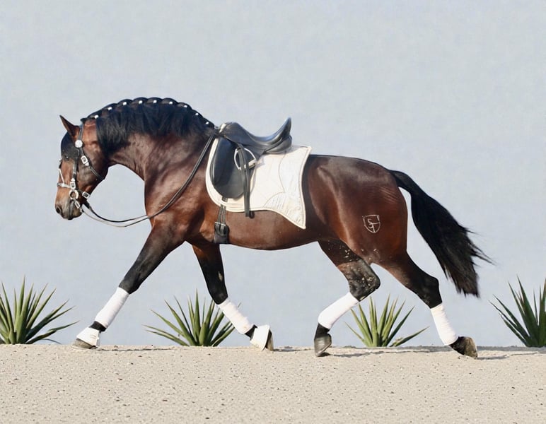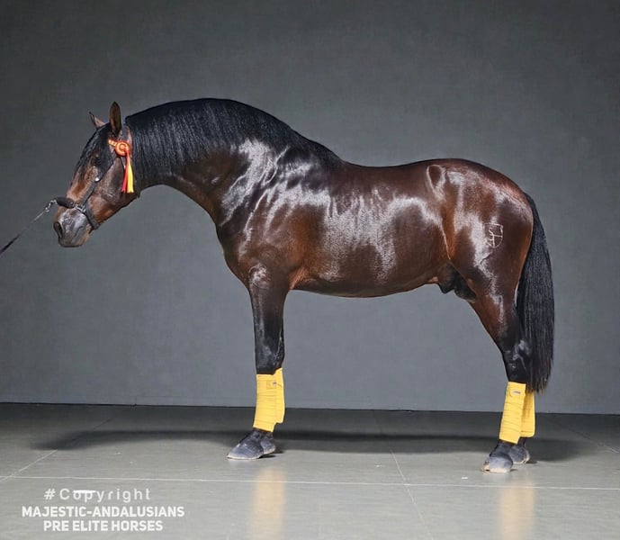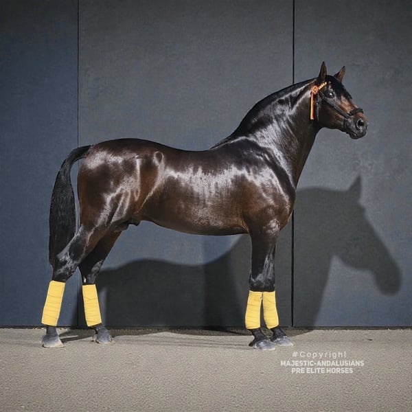 Un semental joven de estilo barroco extraordinariamente hermoso, con un carácter extremadamente dulce. Lineaje de clase mundial con un padre famoso de la cría de Torreluna. Actualmente en entrenamiento. AKU y Röbis disponibles. ¡Un caballo excepcional para los más exigentes!