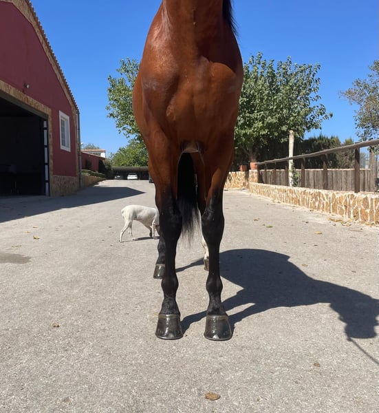 Te koop: PRE-paard, geschikt voor het aanspannen met limonera, kracht en een halve kracht. Het is 4 jaar oud en meet 1,70 m (zoon van JECOMIAS CEN).